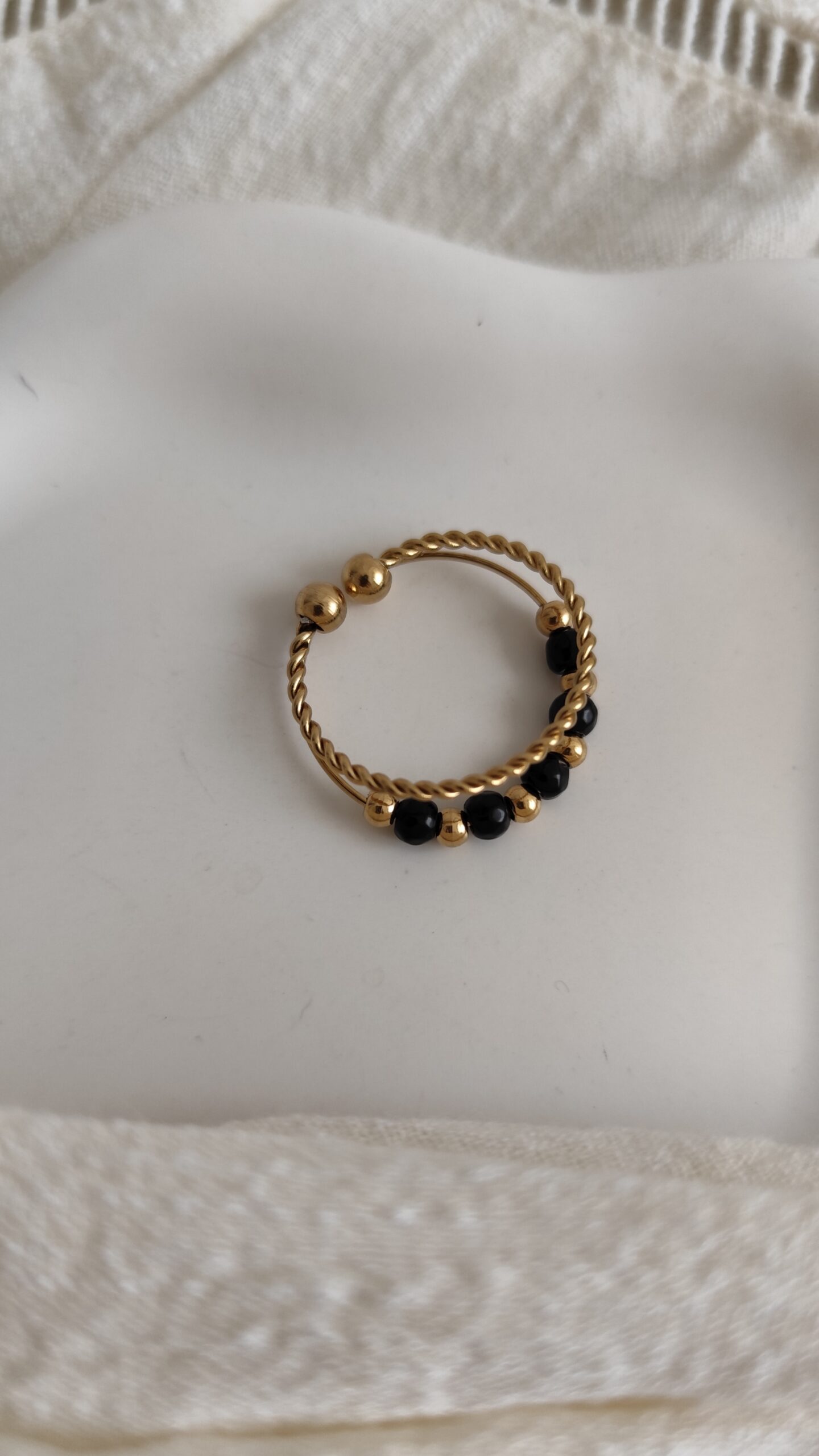 Bague perles noires