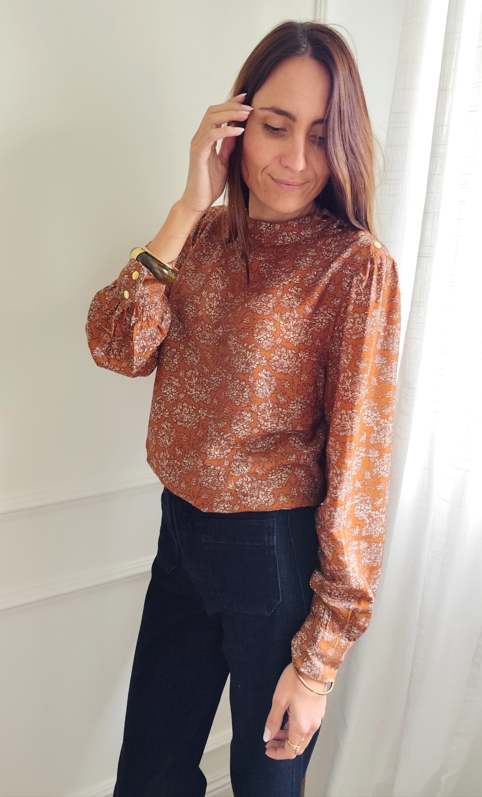 Blouse fluide rouille motif floral