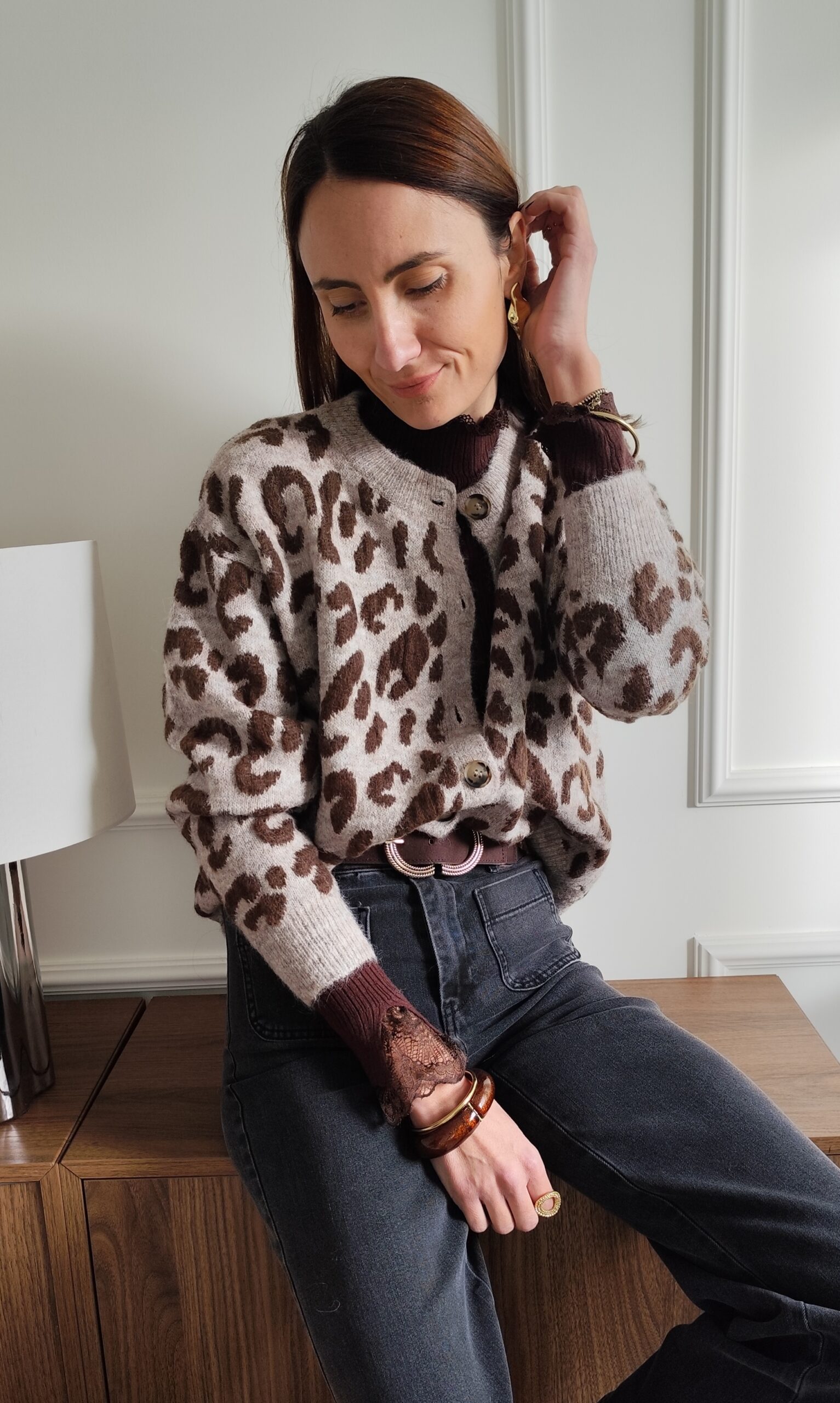 Cardigan léopard taupe