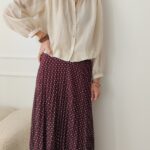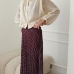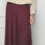 Jupe longue bordeaux à pois plissée