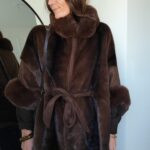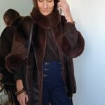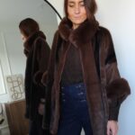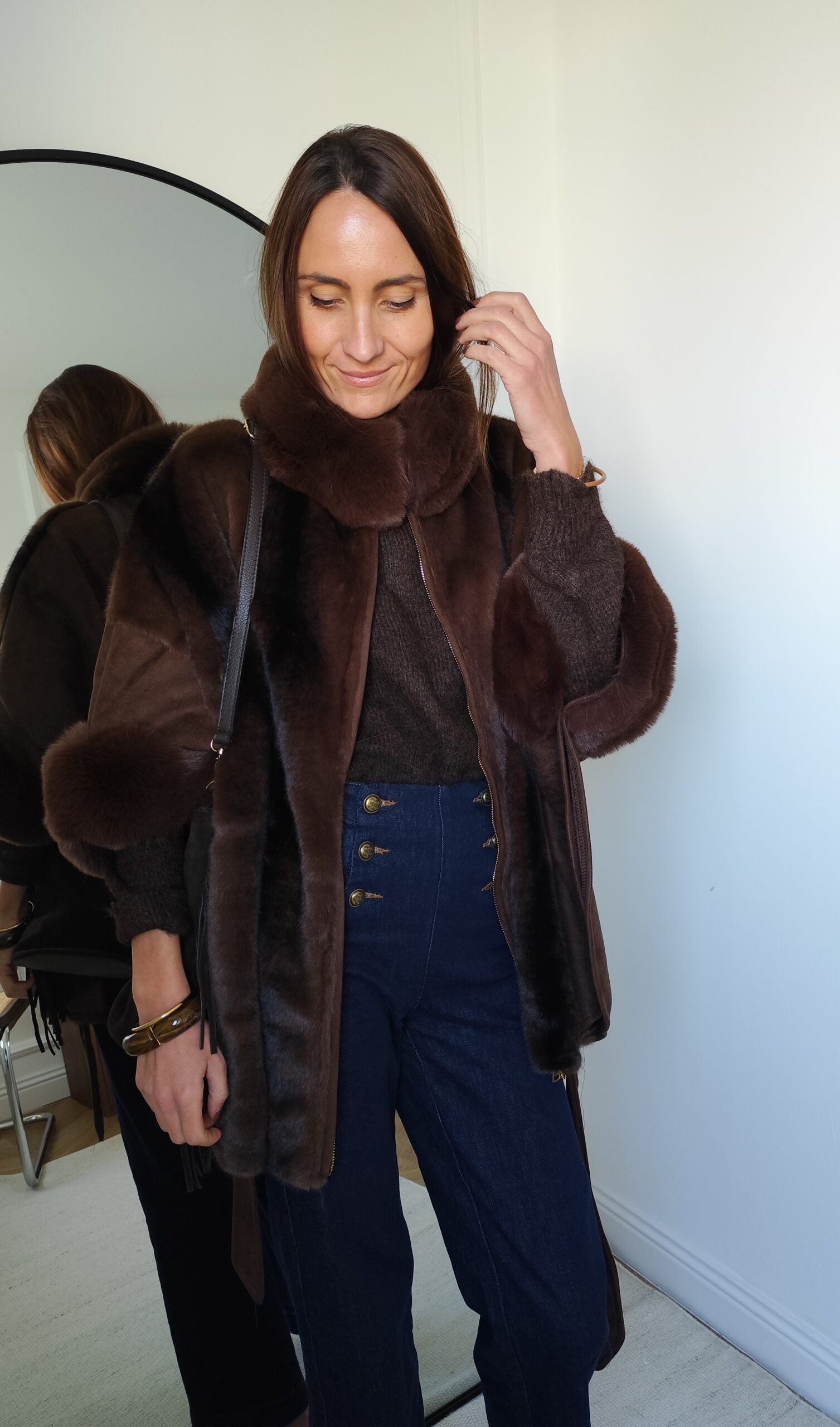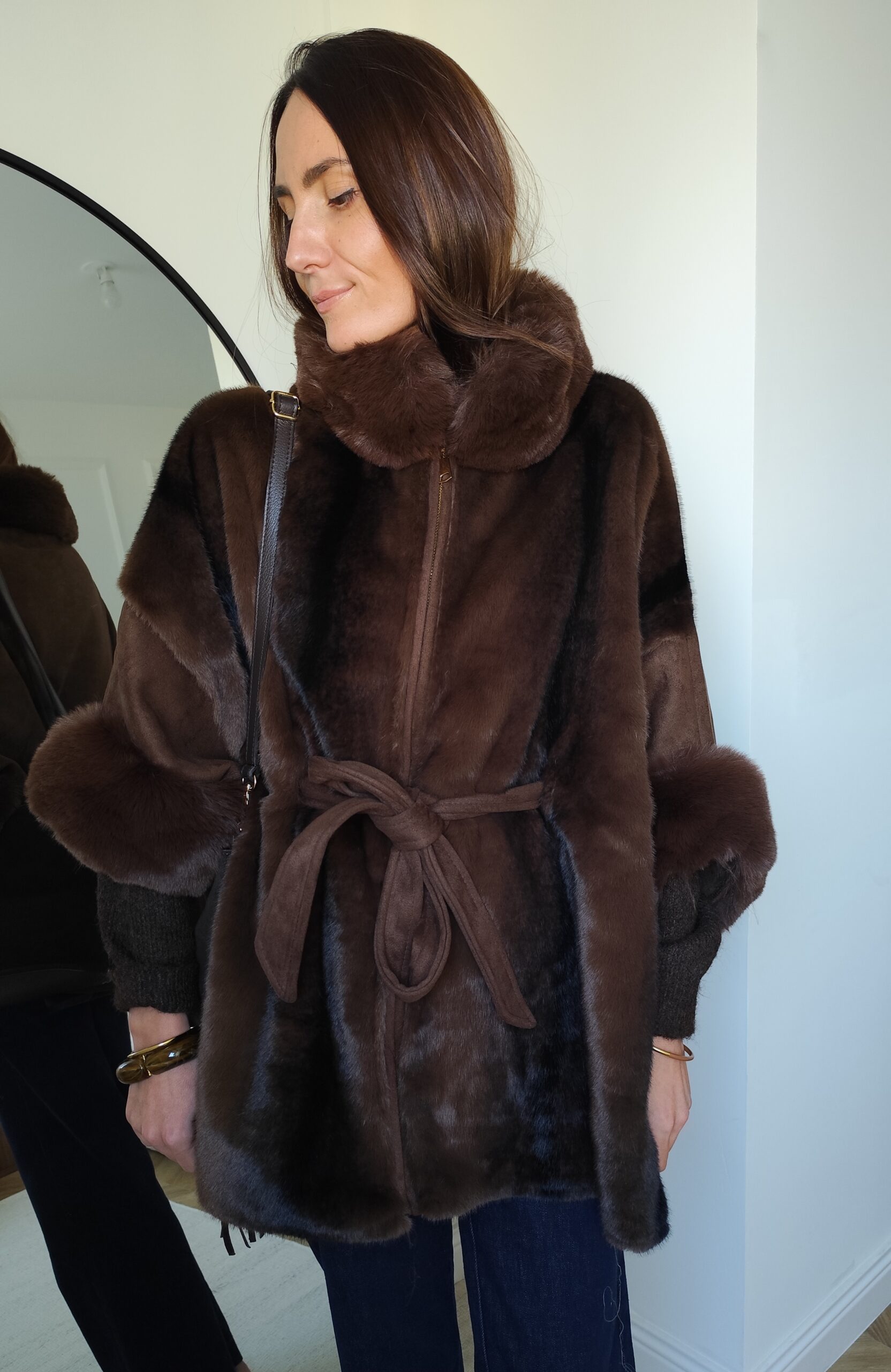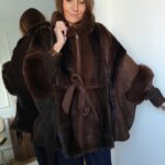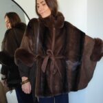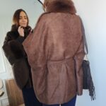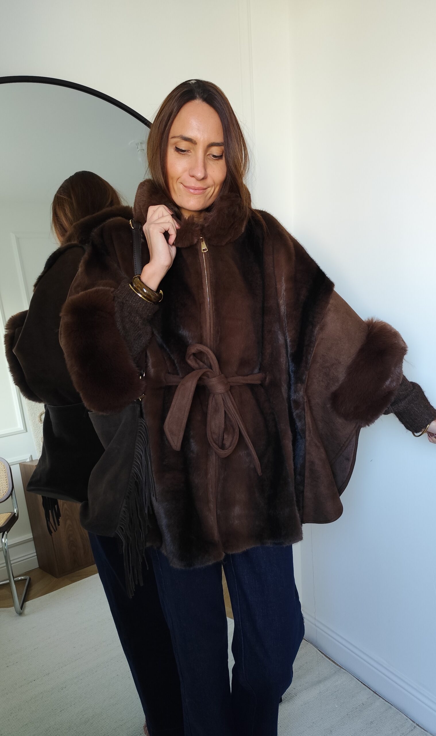 • Manteau poncho en suédine et fausse fourrure