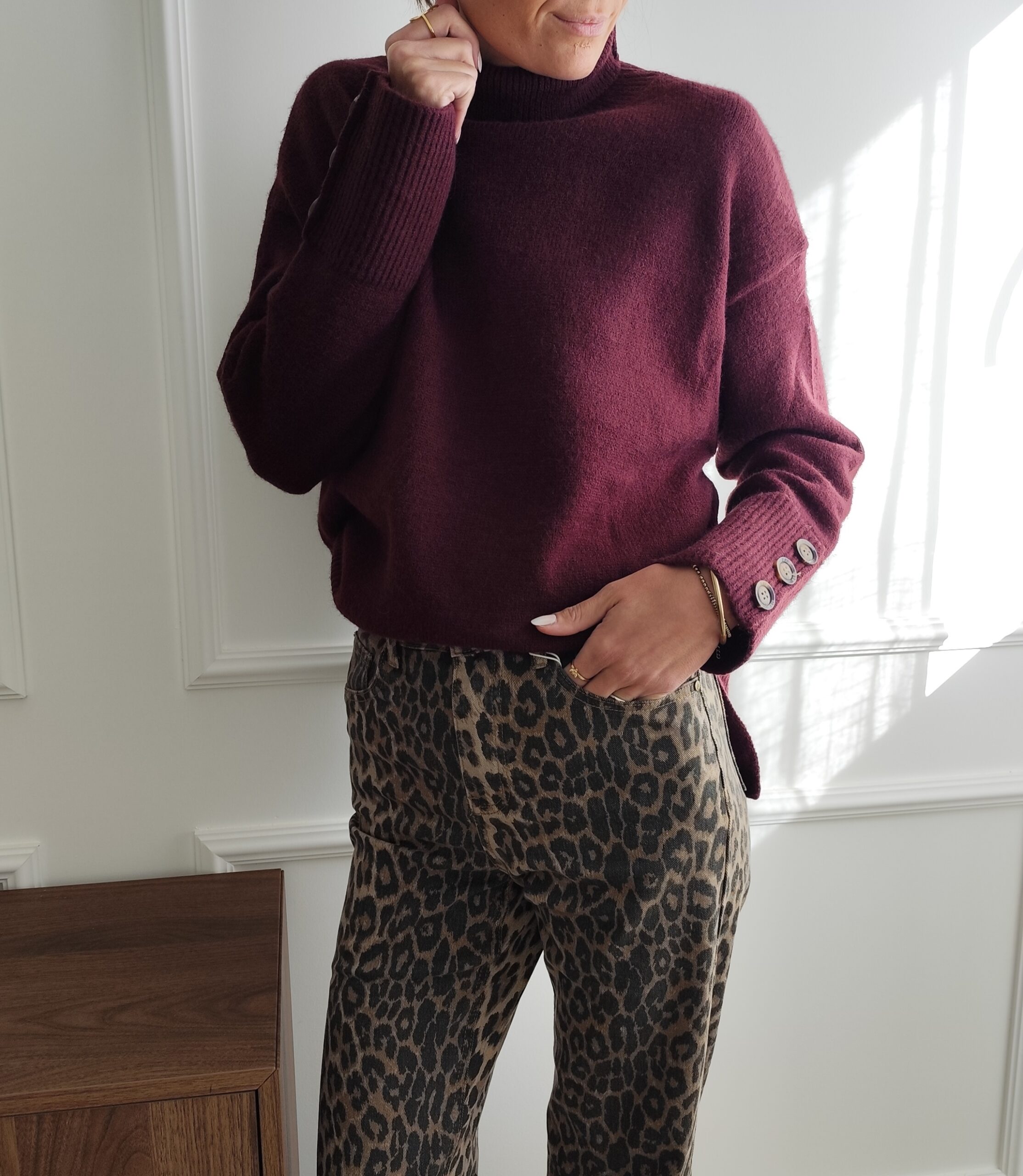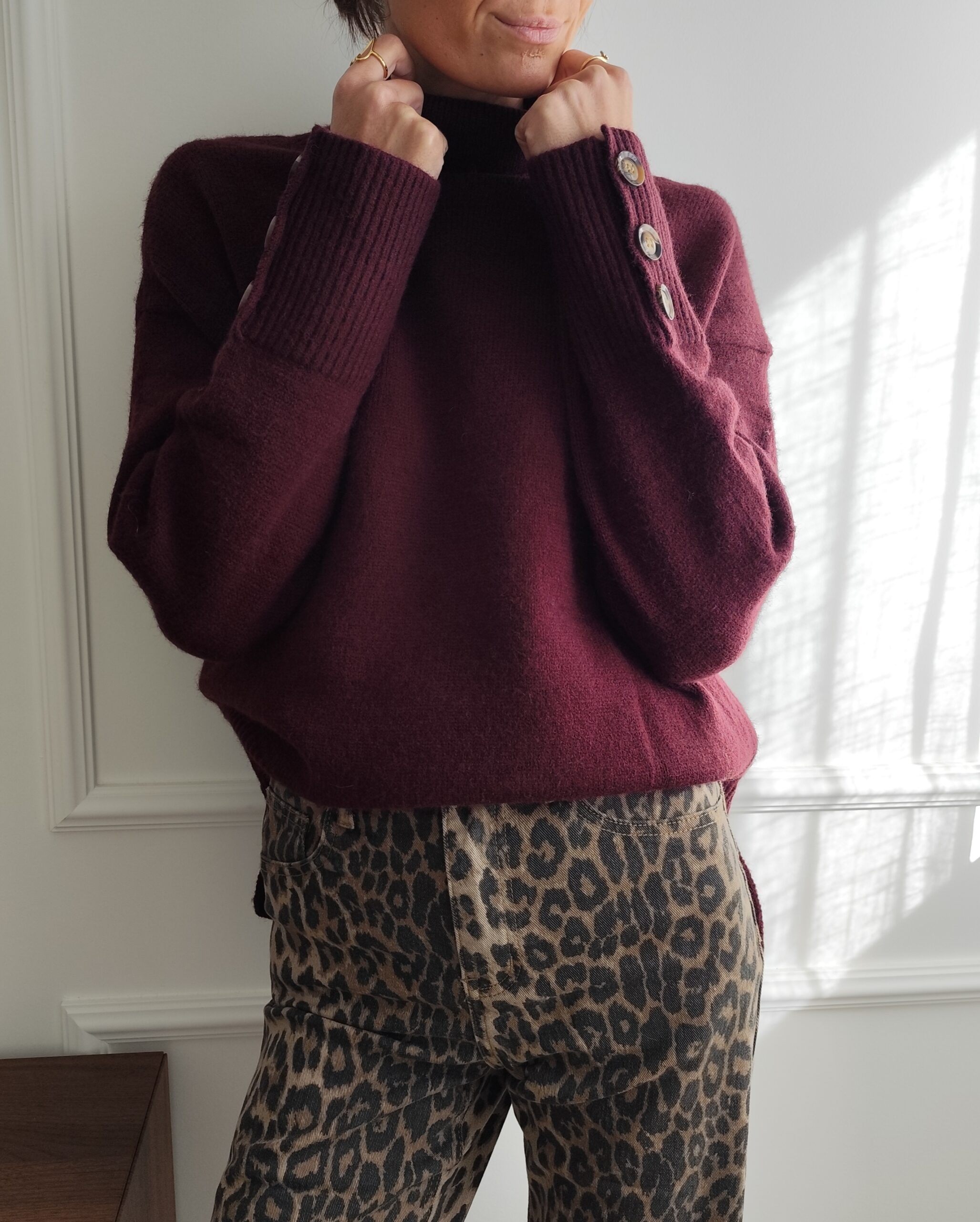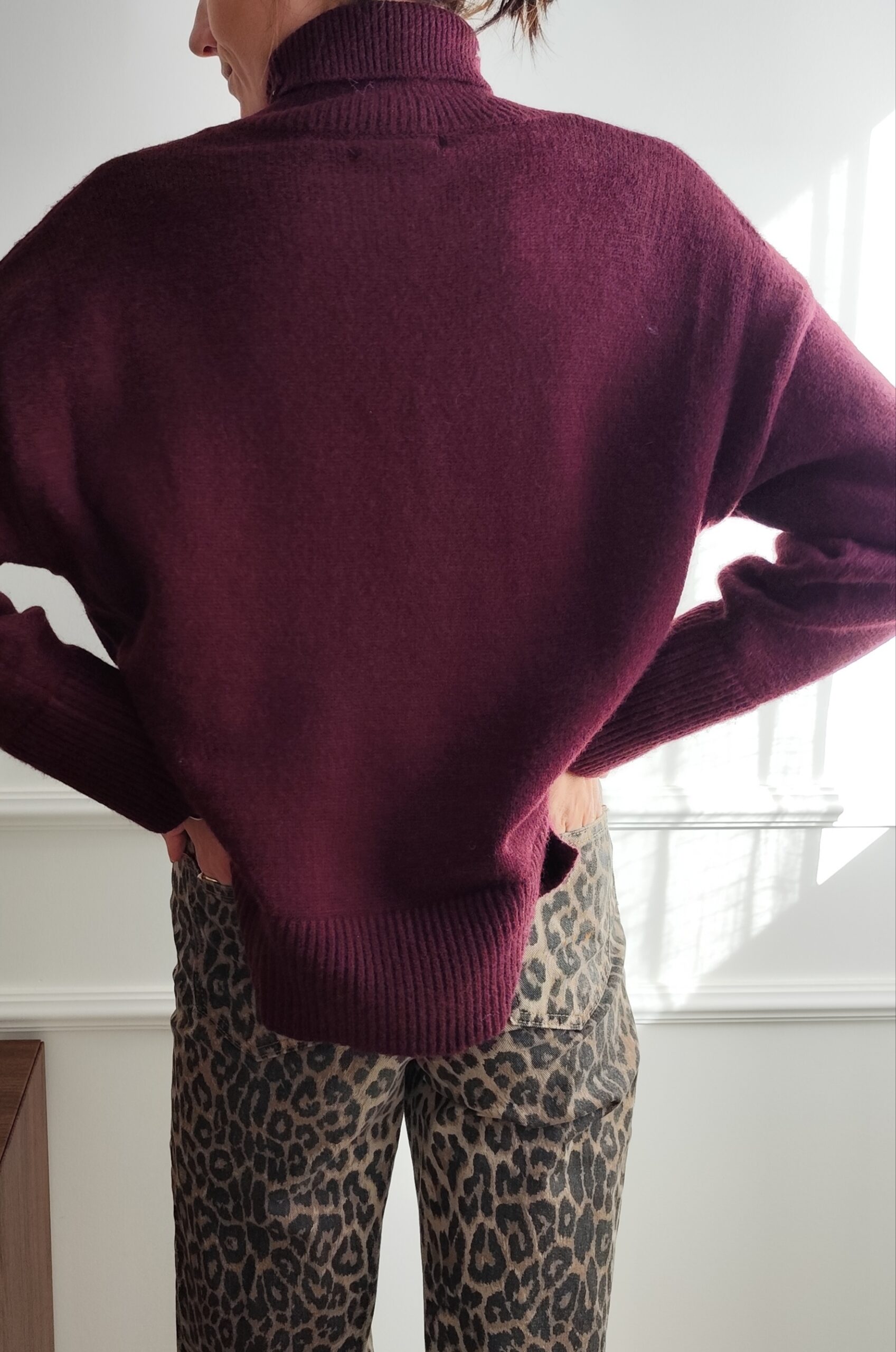 Pull bordeaux, col roulé