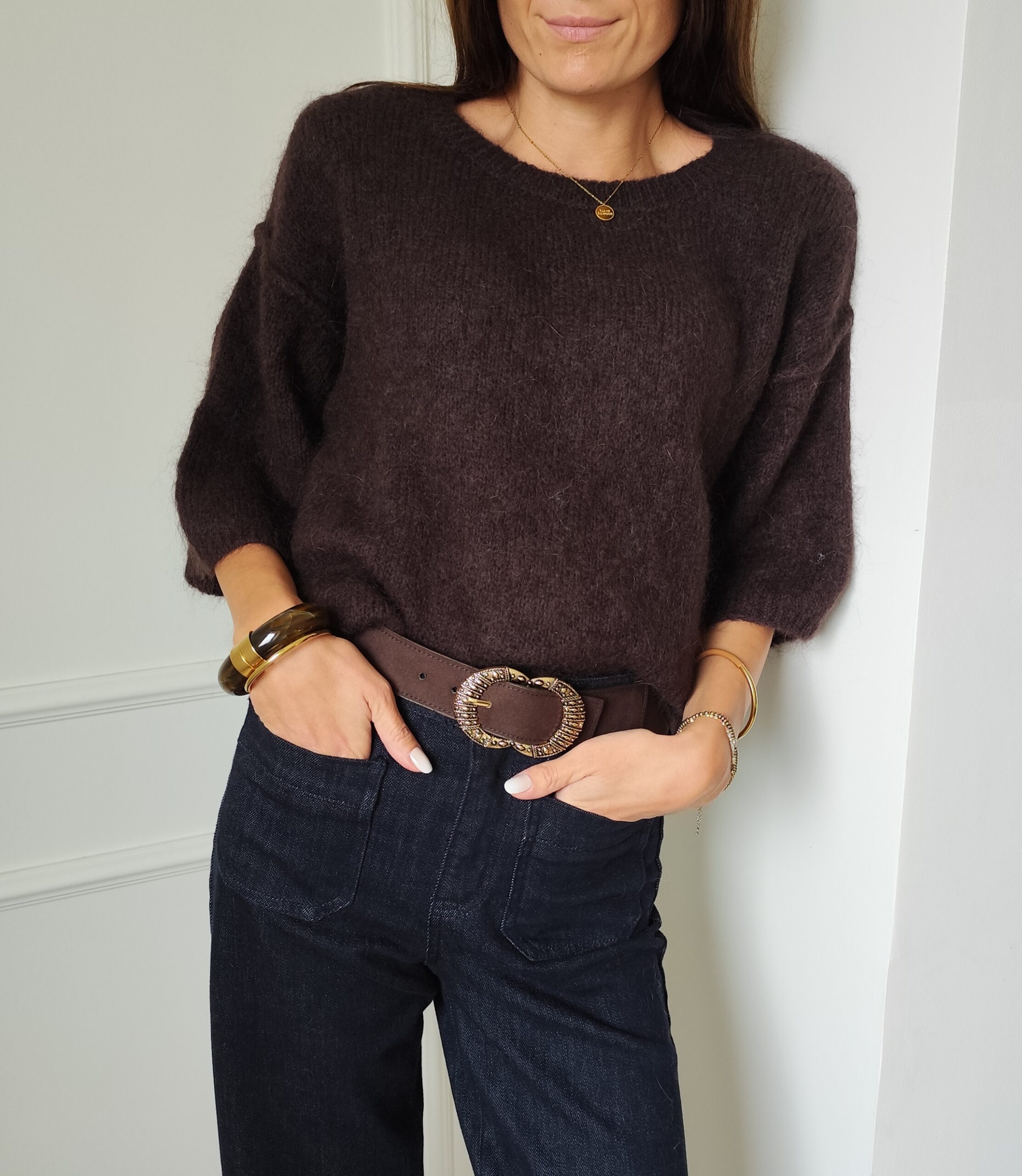 Matières : 40% mohair, 35% polyamide, 25% laine