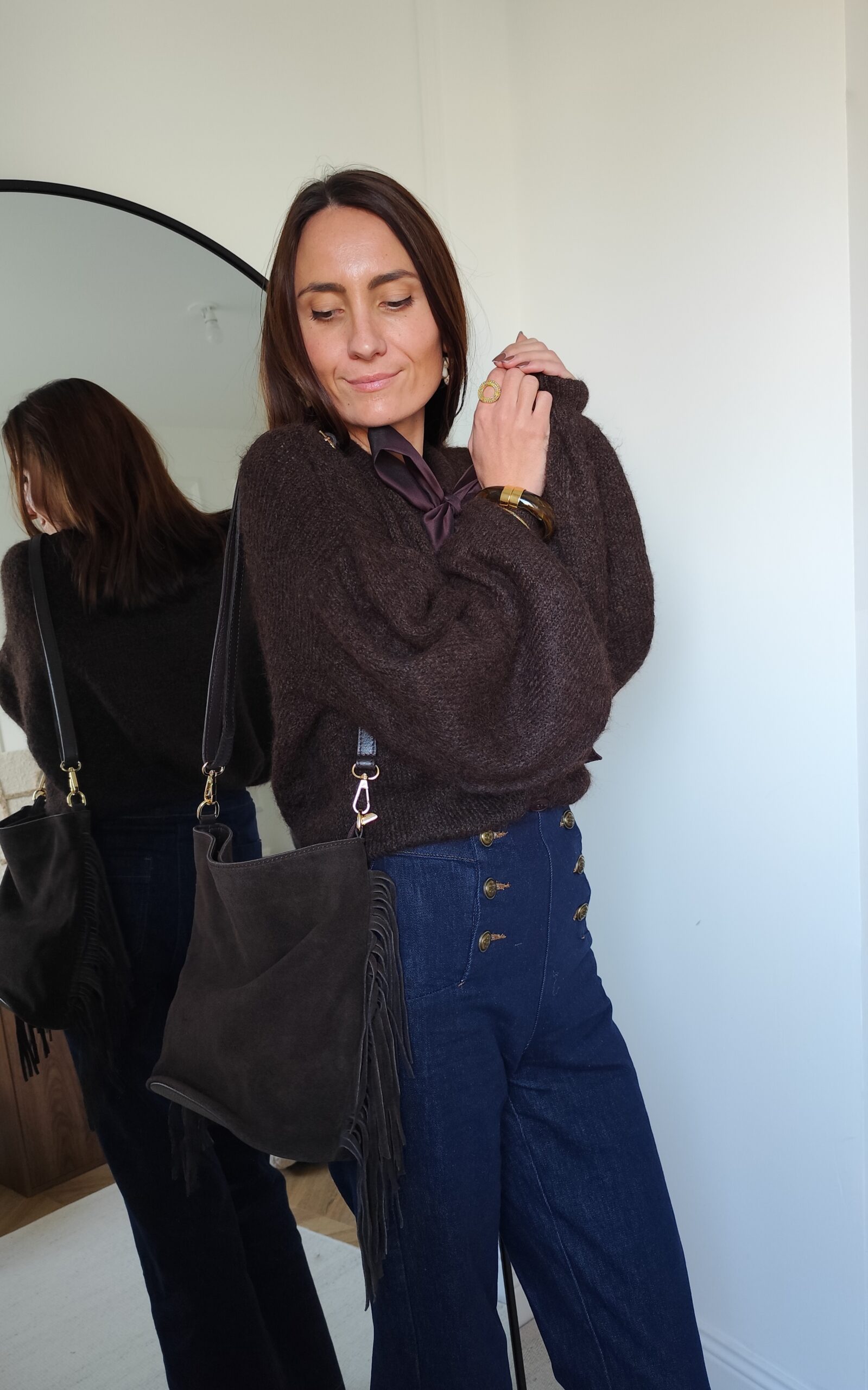Matières : 47% viscose, 30% acrylique, 20% laine, 5% elasthane
