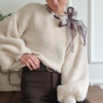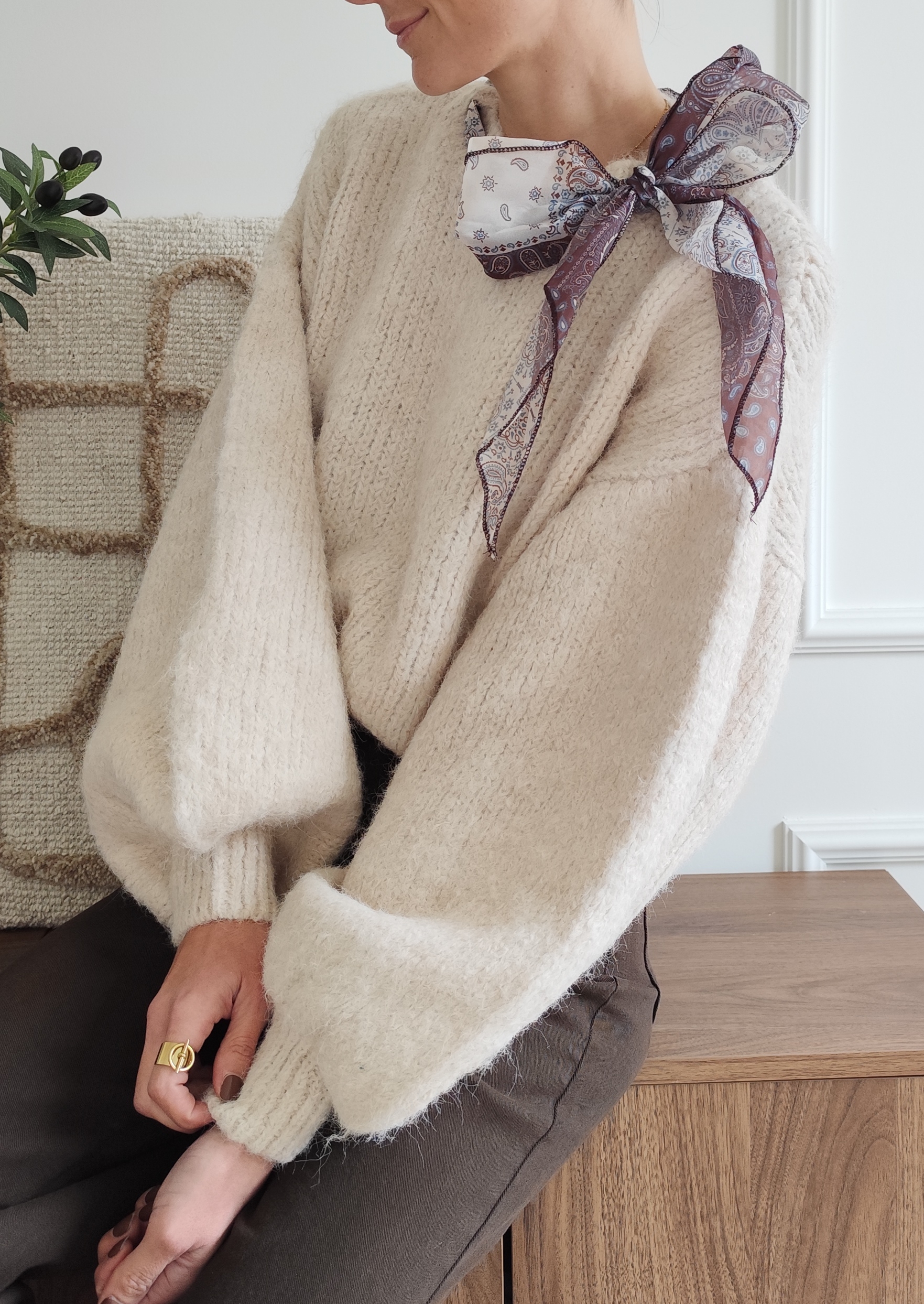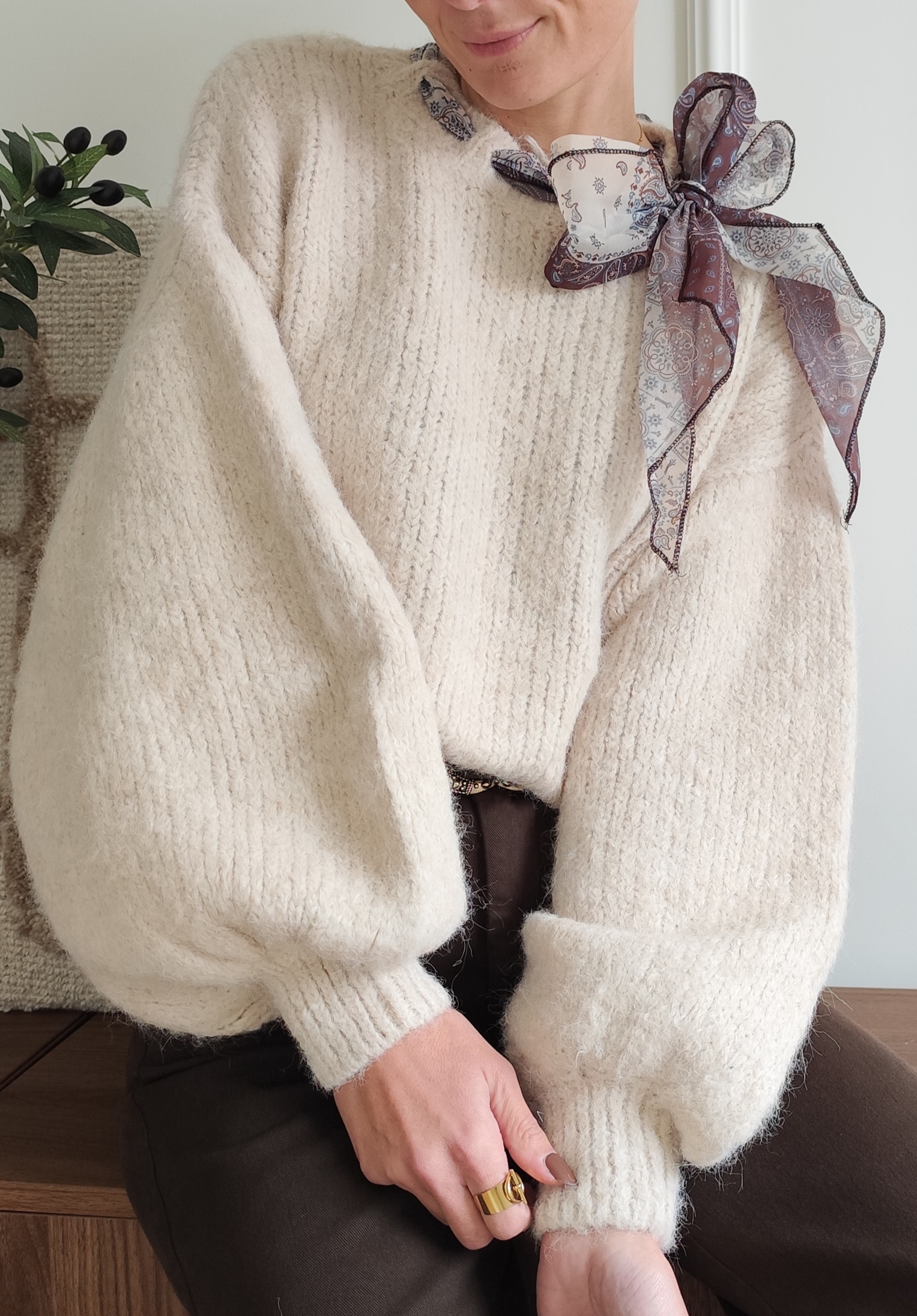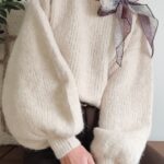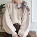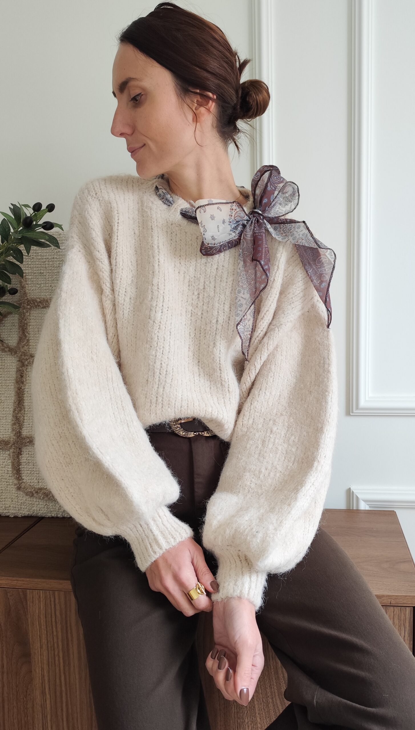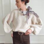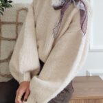 Pull écru avec ruban satiné au niveau de l’encolure