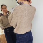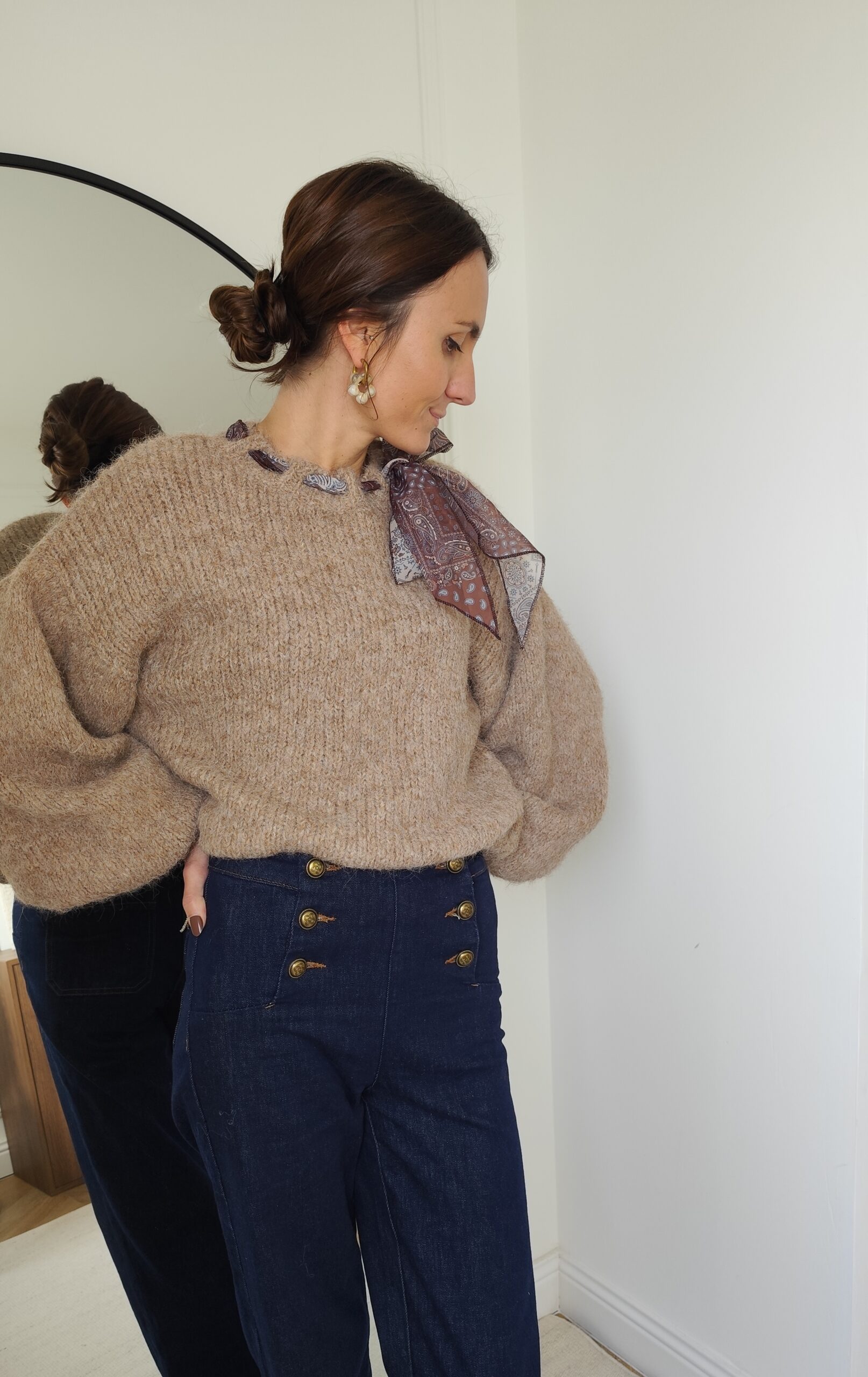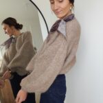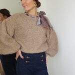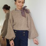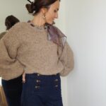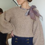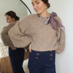 Pull taupe avec ruban satiné au niveau de l’encolure