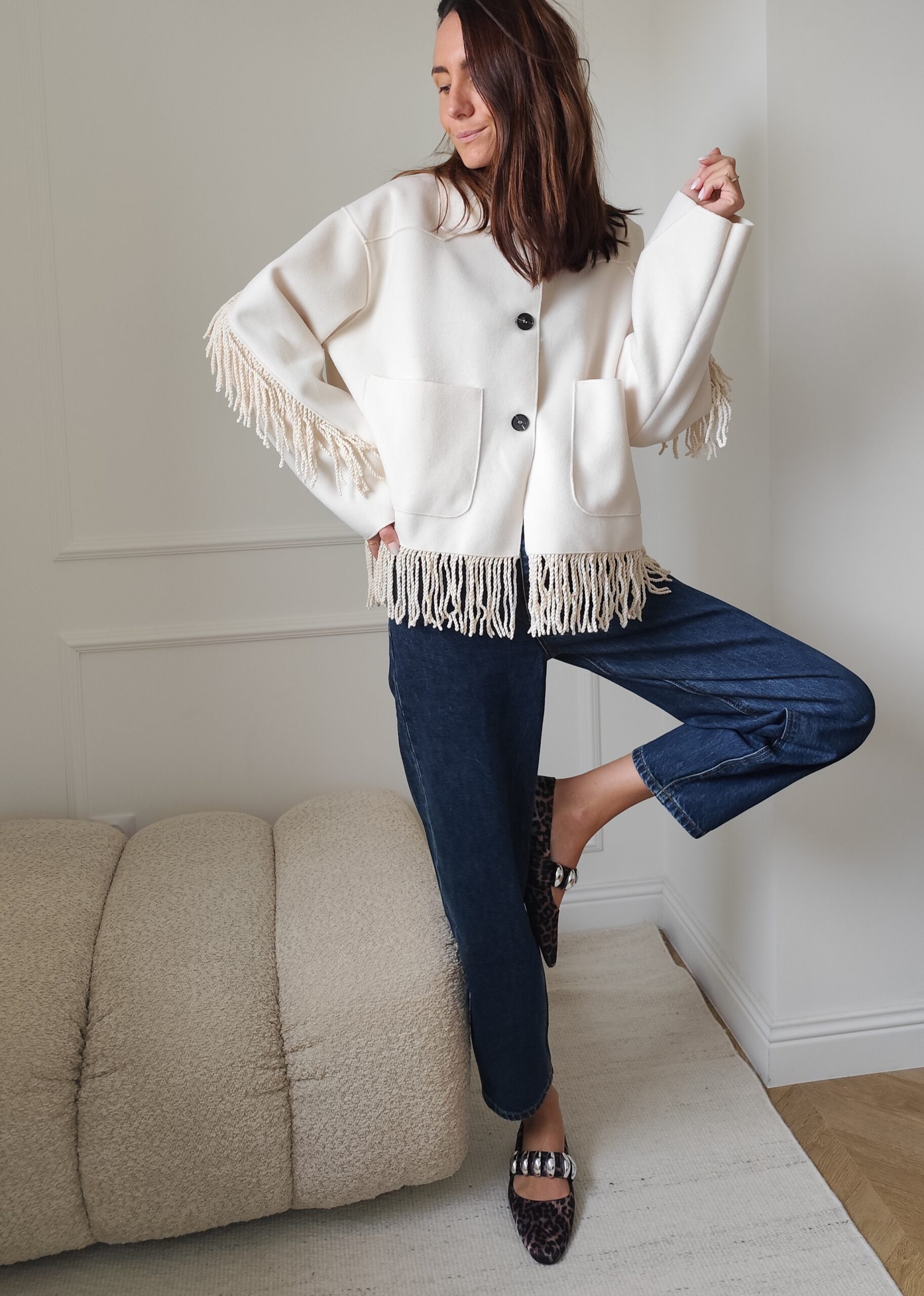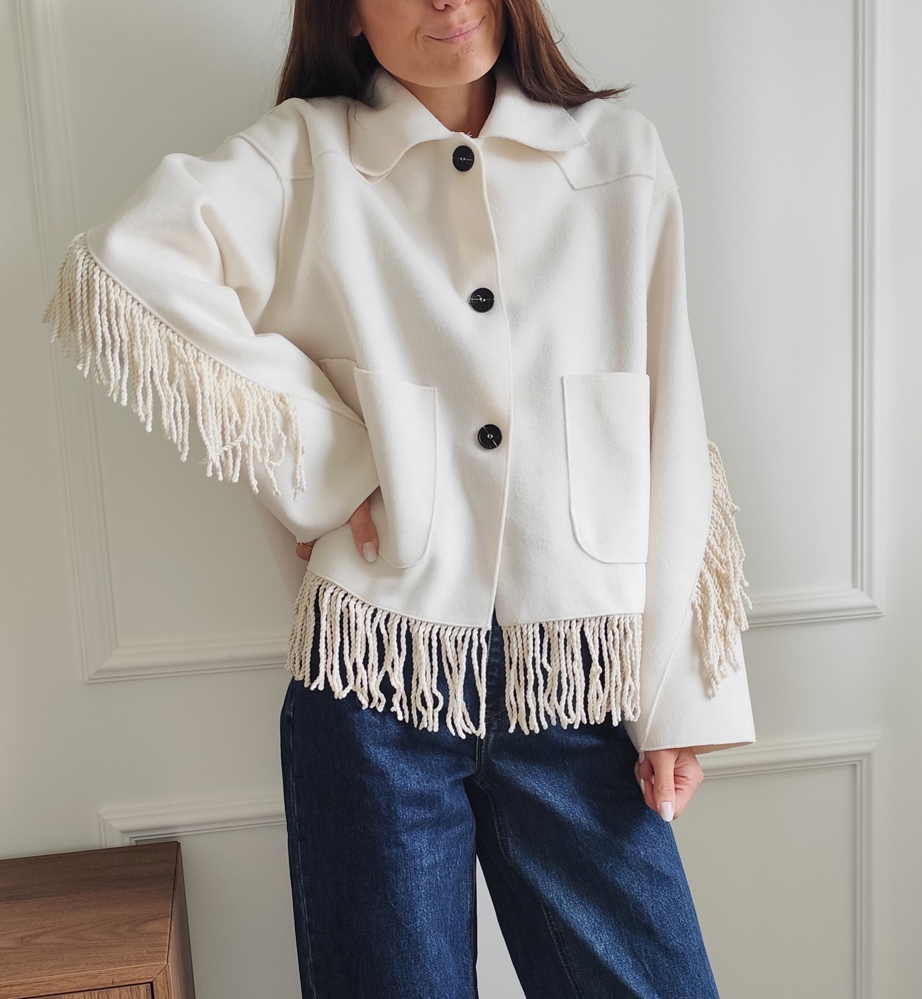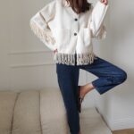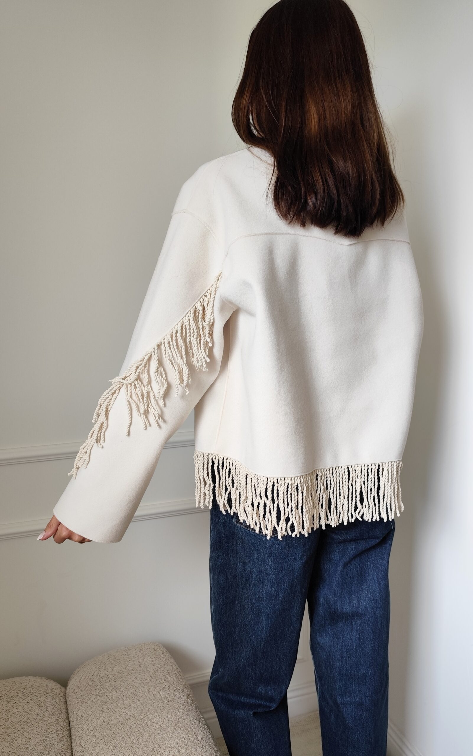 Veste à franges écrue
